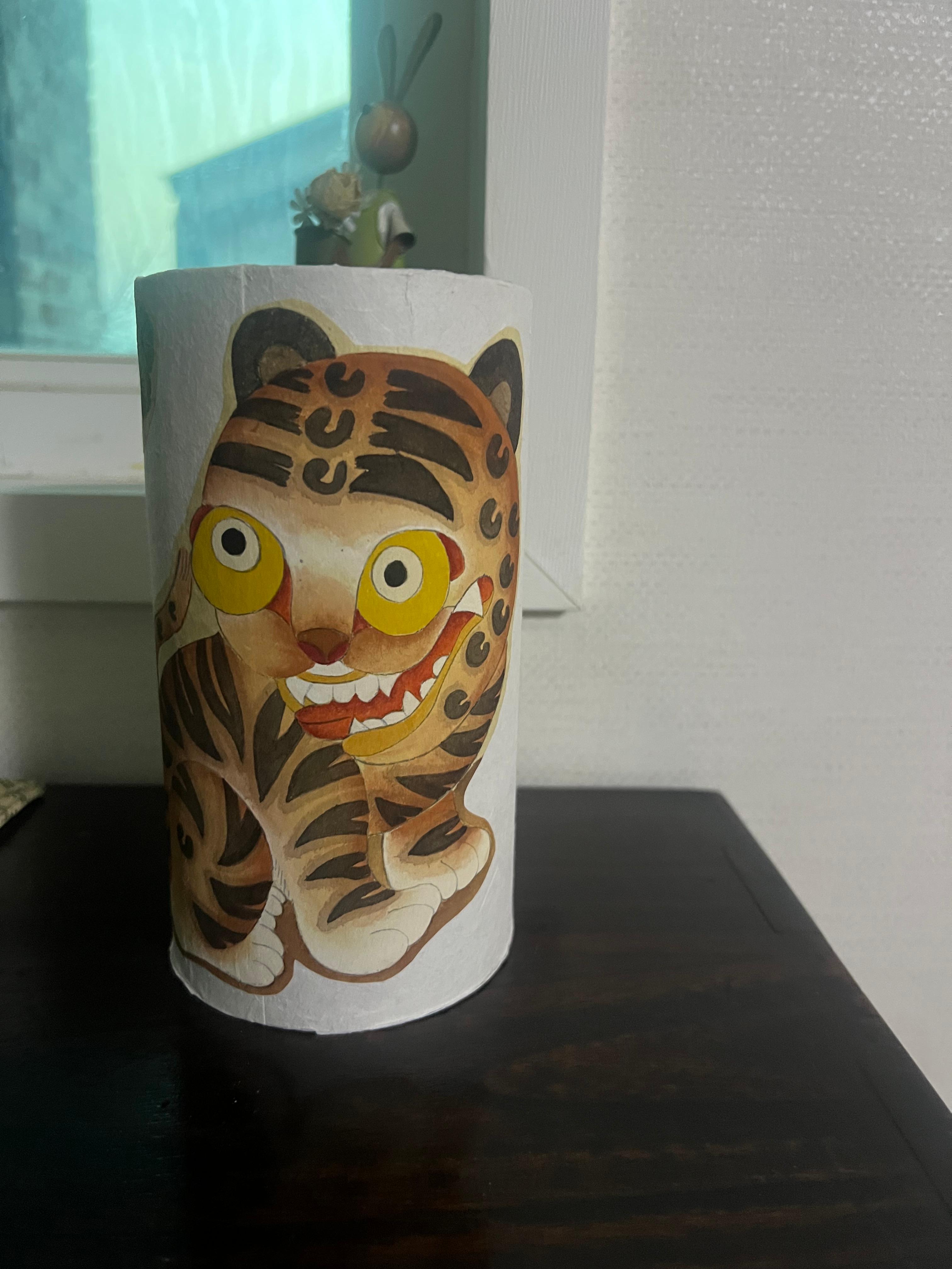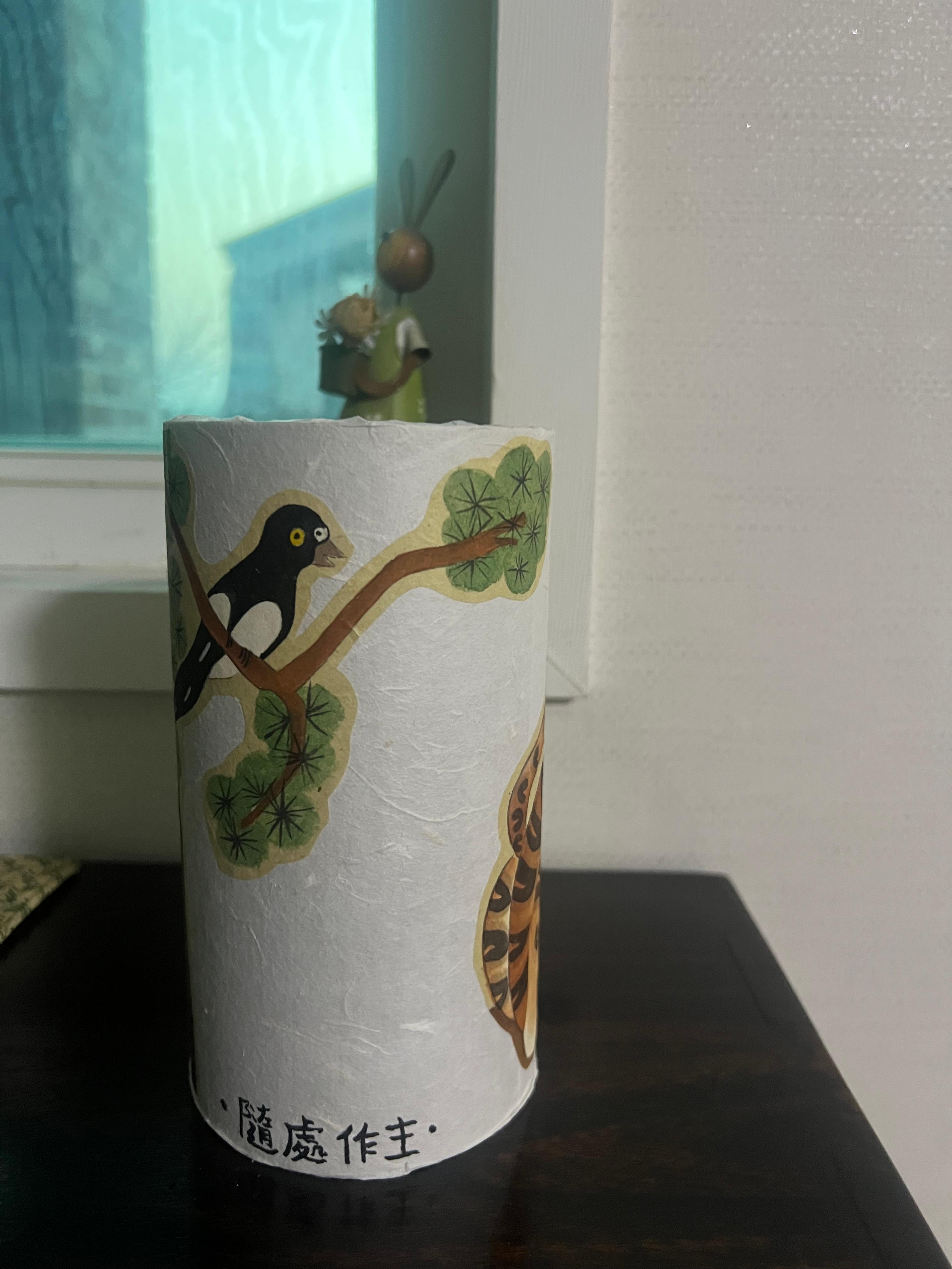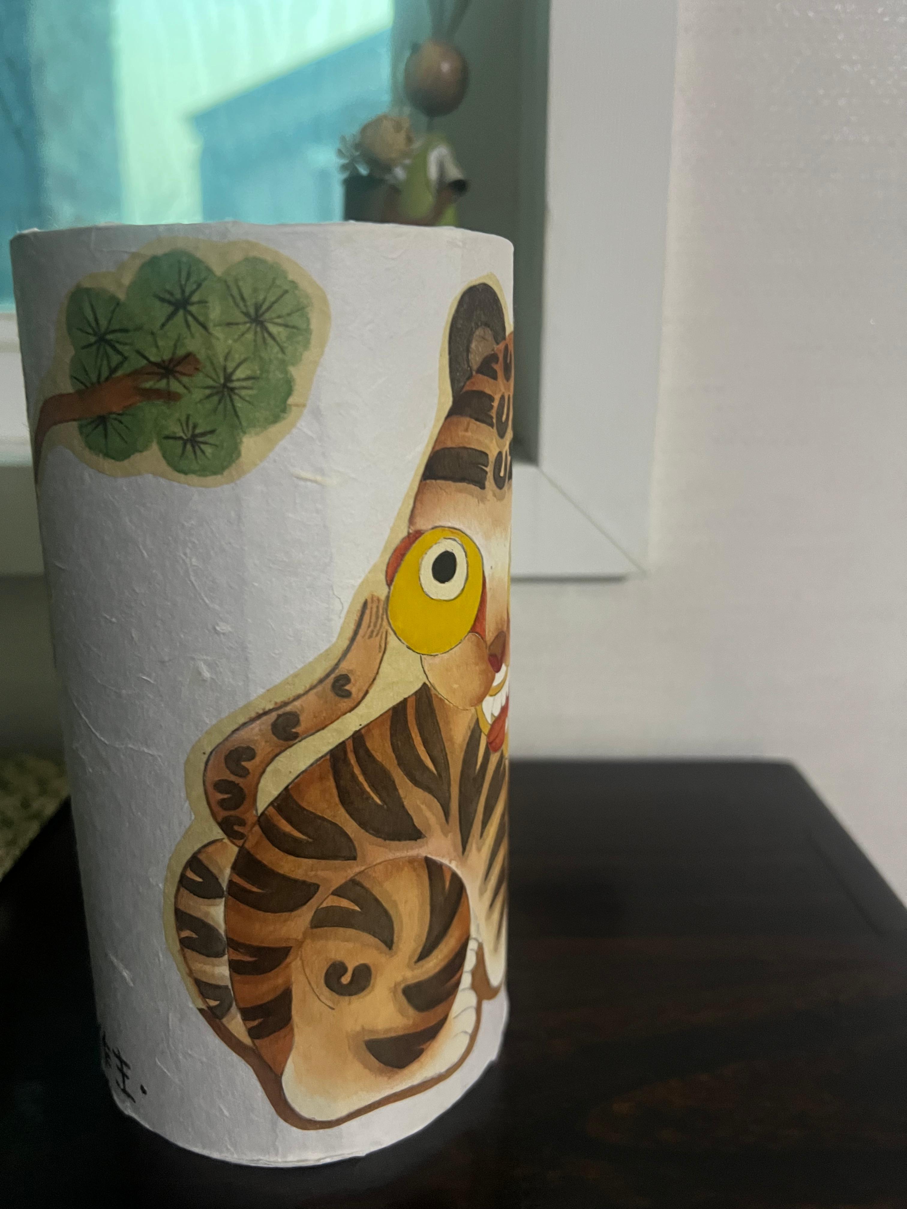 고심한 끝에~~귀여운 스타일의 '까치와 호랑이' 본을 가지고 민화를 완성한 후 가위로